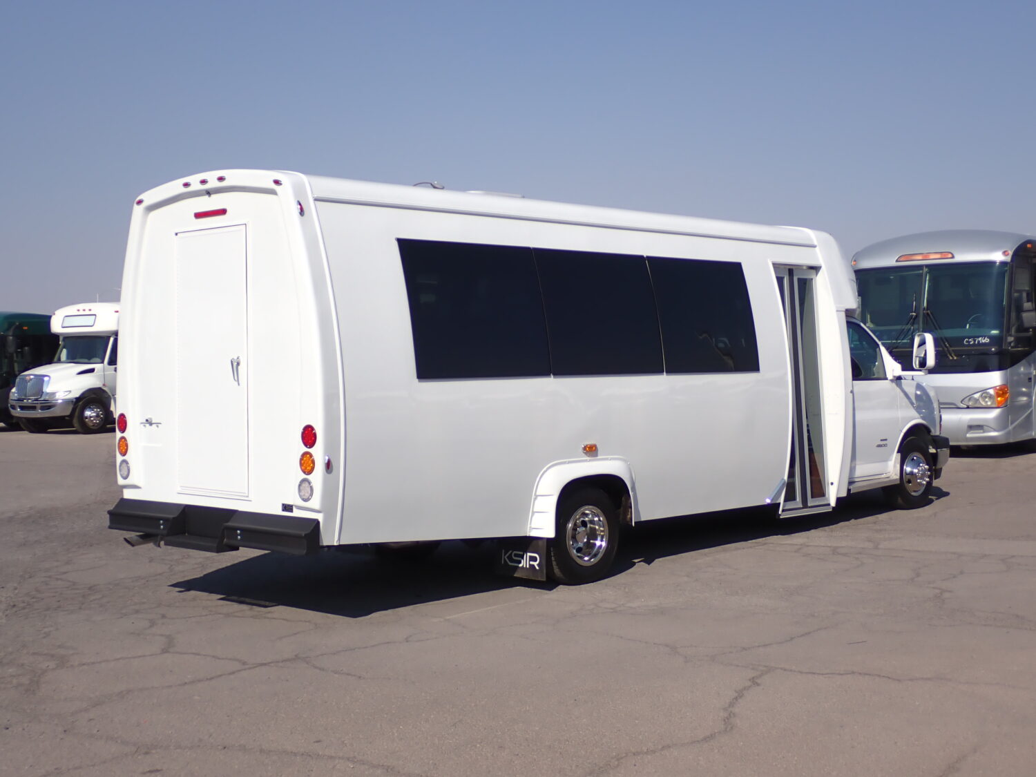 Check out this brand new 2023 KSIR Executive shuttle bus by Elkhart Custom Designs. This impressive shuttle is built on a Chevy chassis powered by their powerful 6.6 liter, V8 gas engine. Inside this shuttle is executive style seating for 21 plus co-pilot, on high back reclining seats covered in a executive black vinyl. There is a ample sized rear luggage area. The public address system features a mic for tours. Other features include heat and A/C system, stainless steel wheel covers and more. Give us a call for more information at 1-877-456-9804. Financing is available.